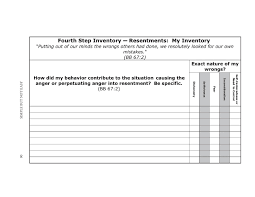 I worked 4th step inventory before the ones i have worked in the past had check boxes that left me feeling as if something was left undone. There is no one right way to do a 4th step inventory. There is a detailed instruction sheet that goes with the step 4 … fourth step inventory. Because people with this disease do. Fourth step inventory — resentments: